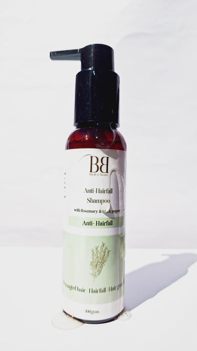 Combat hair fall with our Anti-Hair Fall Shampoo, enriched with rosemary and black pepper extracts.